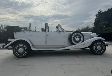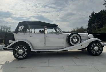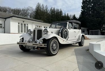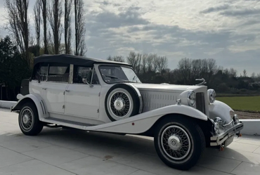 Step into luxury with Dorchester Luxury Cars' Beauford Open Tourer hire service. This timeless classic, resplendent in elegant white, stands as a symbol of sophistication and style for weddings in London and the surrounding areas.